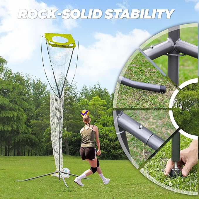 - Unwavering Stability: The volleyball setter training equipment features a sturdy base with a center leg leveler and non-marking rubber feet to prevent scratches on gym floors caused by volleyball training equipment. The telescoping adjustable center pole, with a locking system, is designed to absorb the impact of repeated hits