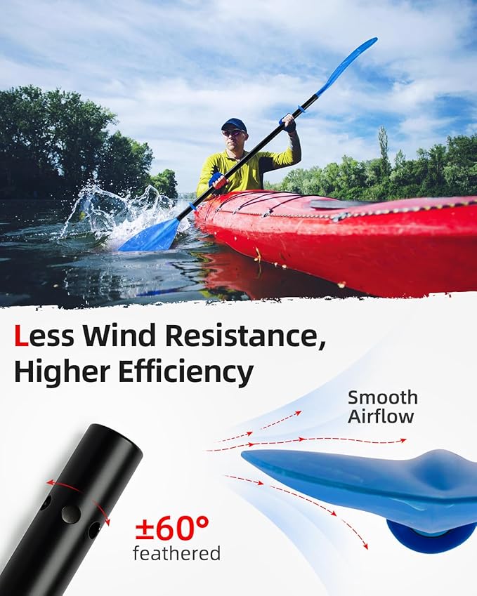 - 【LIGHTWEIGHT AND DURABLE 】The aluminum alloy shaft is known for its strength and ability to withstand the wear and tear of frequent use. In addition to its durability, the aluminum alloy shaft also offers better performance and more efficient paddling. PP blades are lightweight and indestructible blades offer flexibility and efficiency, making it easier for paddlers to navigate through the water with ease.