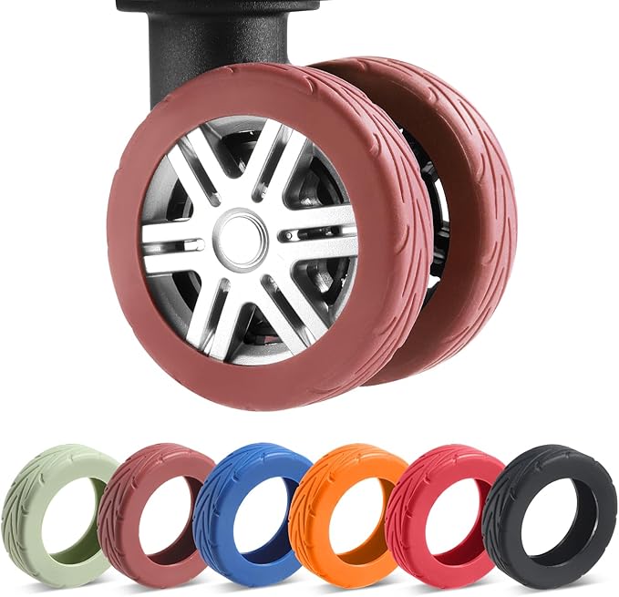 - [The suitcase wheel protective cover is reusable, wear-resistant and silent] The protective cover has an arrow pattern design on the wheel surface, which is anti-slip and anti-wear. The high-quality silicone material is soft and elastic, which can greatly reduce the noise generated when pulling the suitcase, and can effectively protect your luggage wheels. don't worry luggage wheels replacement . Provide more A quieter, more comfortable travel experience. Can be washed for reuse after every trip
