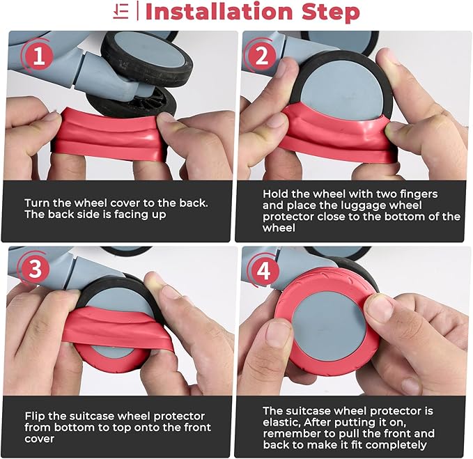 - [Fits Most Suitcases] These suitcase covers for luggage wheel are suitable for suitcases with wheel diameter between 2.0-2.4"(50-60mm),the distance between the luggage wheel and wheel base fender should be more than 0.07"(1.8mm),and the distance between the luggage wheel and axle should be more than 0.05"(1.2mm) ,This Suitcase wheel cover for luggage Suitable for 4x2 double wheels, not suitable for 4x1 single wheels luggage