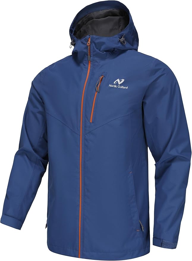 Mens Lightweight Hooded Waterproof Rain Jacket Breathable Raincoat Shell for Outdoor Mountain Hiking
