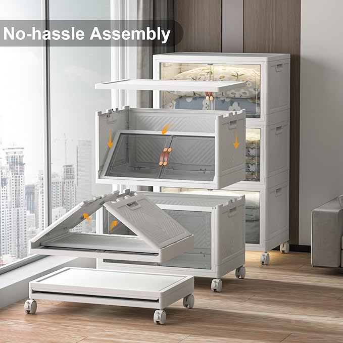 - 【Smooth Mobility with Locking Wheels】: Easily move your storage wherever you need it. These stackable storage bins with wheels feature four smooth-rolling casters, including two locking brakes, keeping your bins stable yet mobile — great for bedrooms, dorms, or offices.