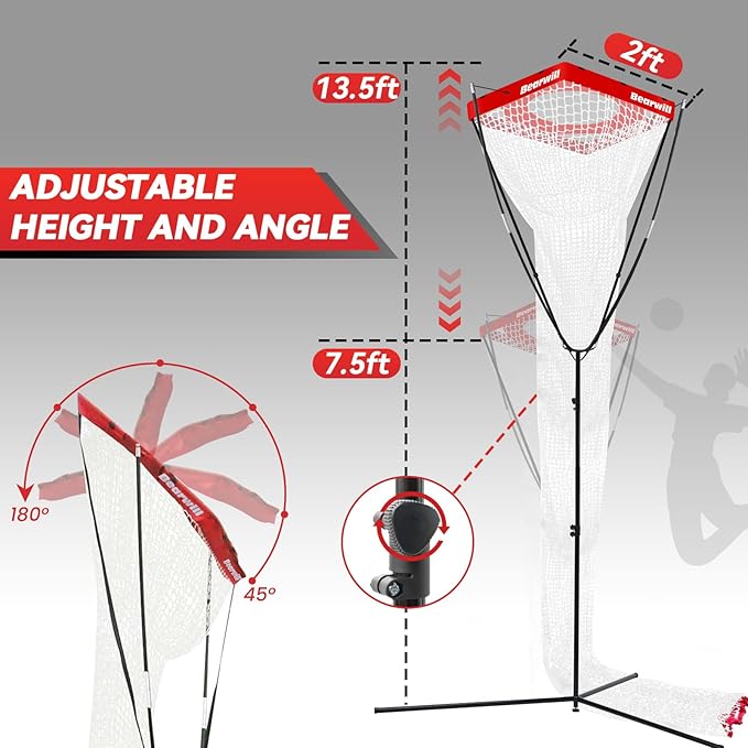 - Adjustable Height and Angle: The height of the volleyball training equipment can be adjusted between 7.5 feet and 13.5 feet, and the basket can be easily adjusted from 45 to 180 degrees with the hook-and-loop straps, making it perfect for targeted practice or intense training for professional athletes, Perfect for Serving, Spiking, and Setting Volleyball Training.