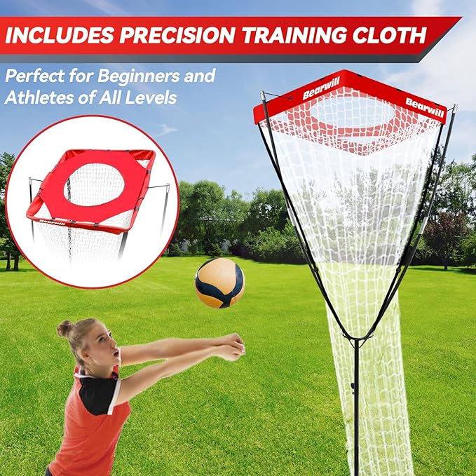 - IMPROVE HIT PRECISION: This volleyball setter training net comes with a special precision training cloth that helps to expertly practice the fundamentals of volleyball accuracy, maintain your sharpness, and ensure that your skills are ready for the game. Additionally, seamless ball retrieval is possible with the built-in drawstring release mechanism, allowing you to focus on hitting the ball without distraction.