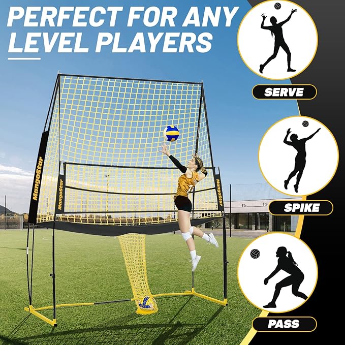 - Durable Netting: Crafted with 5-ply knotless netting and double-stitched seams, this volleyball practice net offers premium tension and durability to withstand powerful impacts. The ball collection system design simplifies ball retrieval, keeping your training sessions efficient and uninterrupted. Good for practicing your serving, hitting, and spiking skills