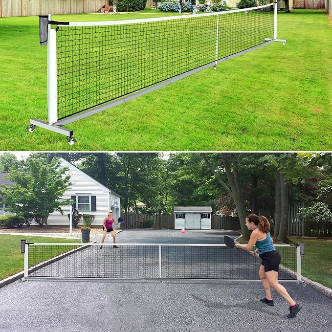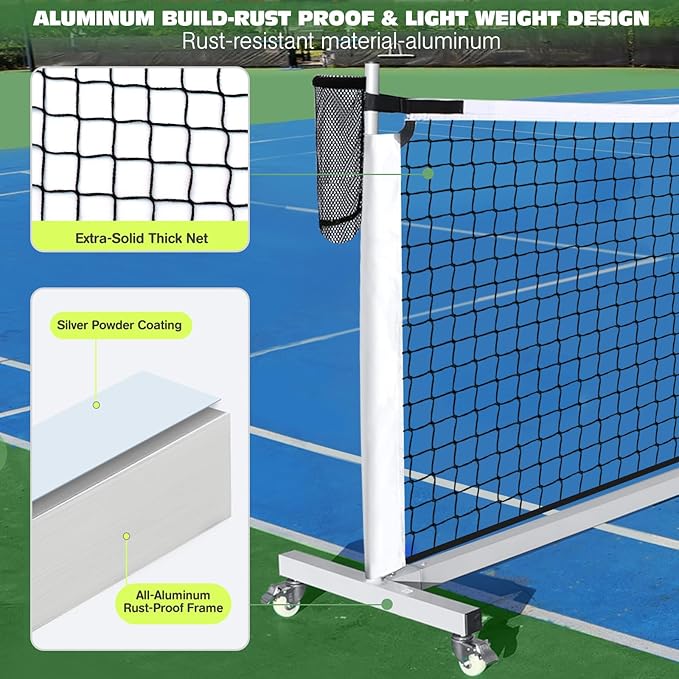 Pro Pickleball Net Portable with Wheels – 22ft Heavy Duty Pickleball Net System with Sturdy Aluminum Frame for Outdoor & Indoor – Nylon Net & Carrying Bag for Pickleball, Tennis, Badminton
