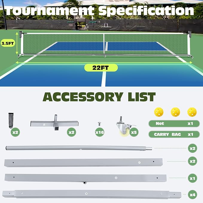 - ✅ 【USAPA Approved Regulation Pickleball Net System】 - Official tournament size (22'L x 36"H sidelines/34"H center) meets all competitive standards. Heavy-duty construction delivers professional performance for courts, driveways, parks or rec centers.