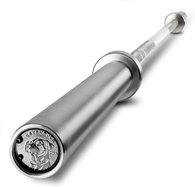 - CATAHOULA WEIGHTLIFTING BAR: The Catahoula Bar, weighing 20kg, provides exceptional performance with smooth rotations from eight needle bearings. The hard chrome finish of the Catahoula provides a rust-resistance finish. Medium knurling and dual IPF / IWF markings make this barbell suitable for squats, deadlifts, bench press, and more.