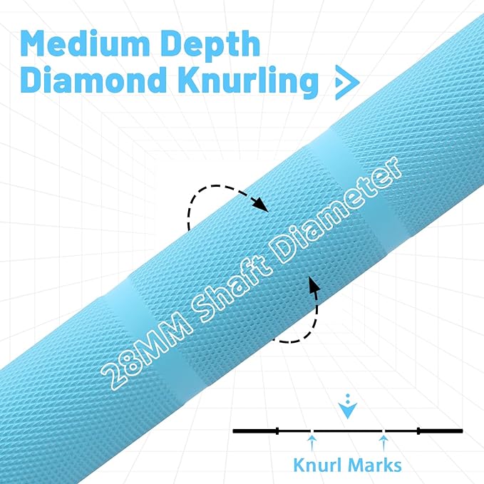 - Secure-Grip Knurling for All Training Styles: Medium-depth knurling pattern provides optimal traction for powerlifting while remaining comfortable for high-rep workouts. Designed to reduce hand fatigue during extended sessions