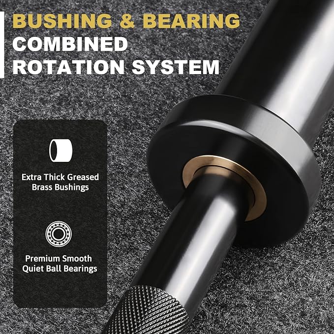 - Uncompromising Durability with Smooth Performance: Made of premium grade alloy steel, LIONSCOOL 4ft training bar is built to withstand the test of time. Overall black E-coat finish provides unrivaled resistance to corrosion and oxidation. The sleeves are smooth enough to offer a seamless and quiet plate-loading experience. Premium ball bearing and self-lubricating brass bushing in the sleeves enable outstanding spin and stability.