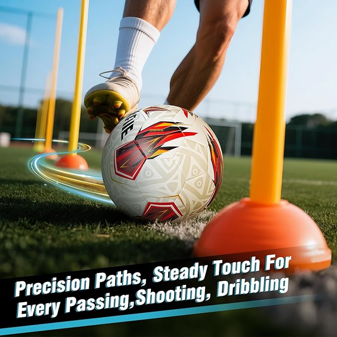 - 【Upgrade thicker PU Cover】Engineered with a PU cover over 30% thicker for heightened responsiveness on every touch—preserving the classic softness and elasticity of stitched balls while delivering thermal-bonded shape stability. Built to withstand grass, turf, and rough patches, it holds its form longer, cutting down on replacements.