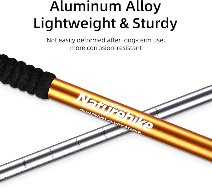- 【Ergonomic Handle】 Ergonomically designed handle provides comfort even during extended use. Hiking poles feature sweat-absorbent, non-slip EVA foam grips for comfortable stability.