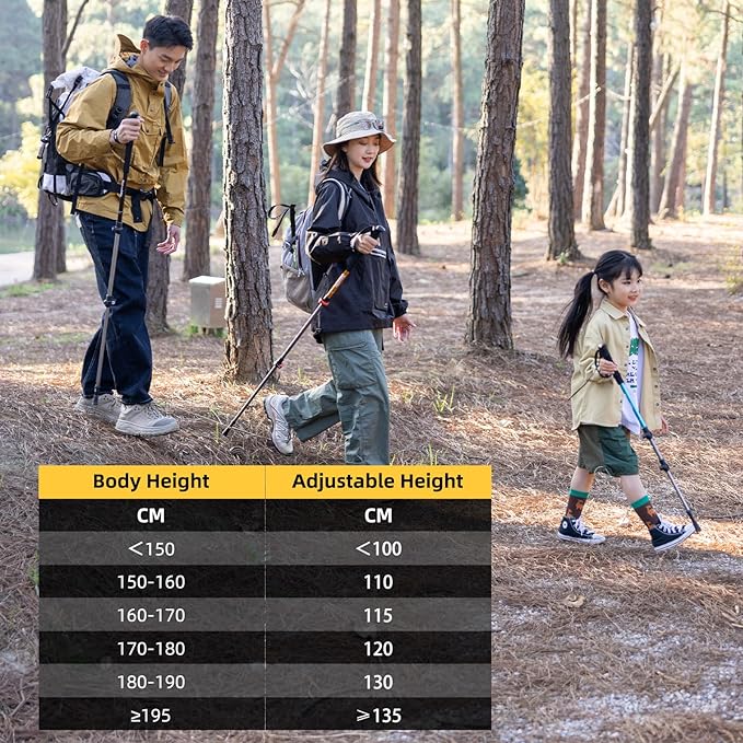 - 【Long-lasting construction】Crafted from grade aluminum, the folding walking stick is robust and provides unparalleled stability and support for your outdoor activities. Perfect for both male and female hikers seeking reliable collapsible poles.