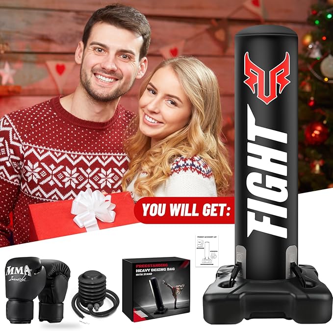 - Boxing Bag with Stand: This punching bag stands approx 69'' tall, suitable for teens and adults. The punching bag for teens is designed for dynamic strikes targeting the entire body range. Ideal boxing equipment for stress release and strength build.