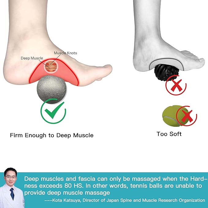 - 【Hard Ball】 -this foot massage ball Massage fascia, acupuncture points, muscle correction. Self myofascial release eliminates muscle knots and tension. Trigger point therapy massage lacrosse balls relieve sore and tight muscles to rejuvenate and revitalize all areas of the body.