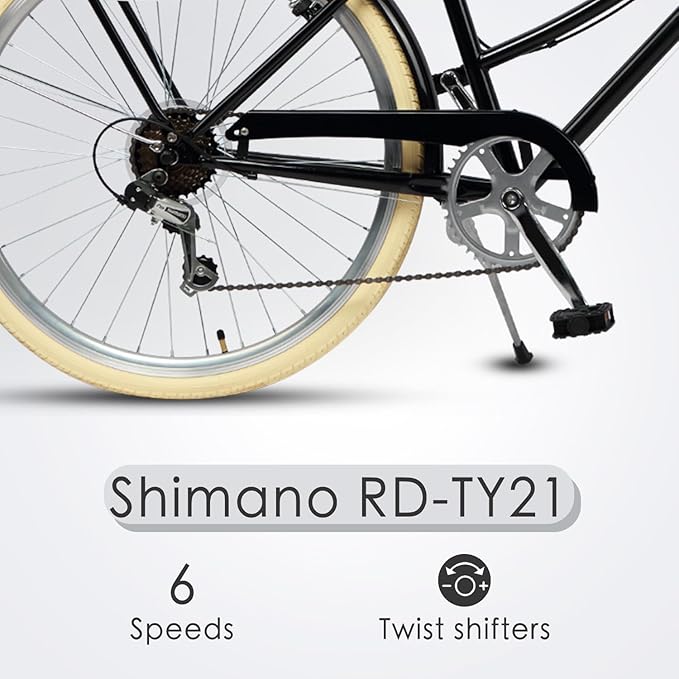 - 🚴♀️【Women-Centric Ergonomic Design】Crafted for female proportions: A low-step high-carbon steel frame enables easy mounting, while the swept-back handlebars promote upright posture (reducing back strain). The brown synthetic leather saddle with shock-absorbing springs combines vintage aesthetics with modern comfort.
