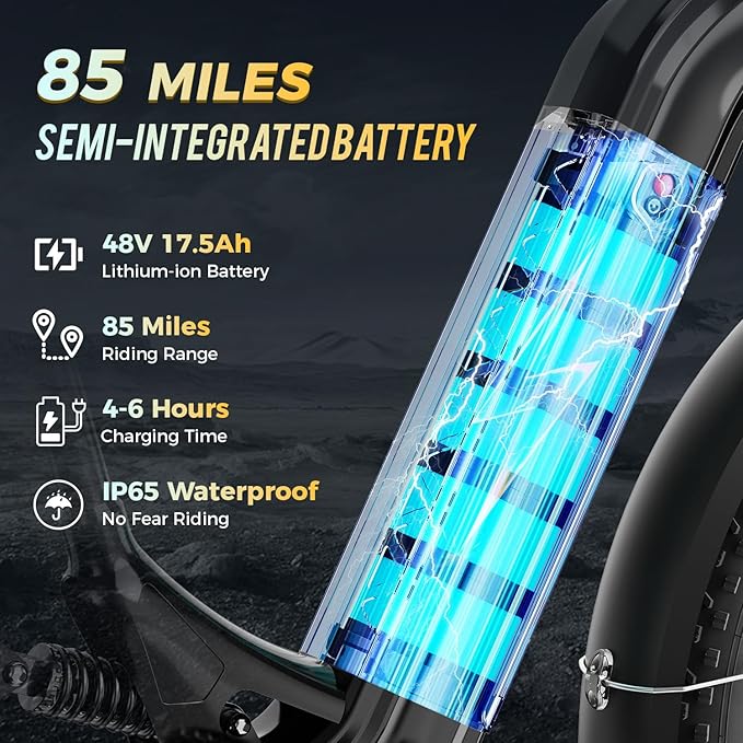 • 🔋【Extended Range with 48V 17.5Ah Battery】 Equipped with a high-capacity 48V 17.5Ah removable battery, the M1 pro electric bike offers you can enjoy a range of 25-85 miles per charge. Ideal for long-distance riders, daily commuters, or weekend adventurers looking for freedom and endurance.