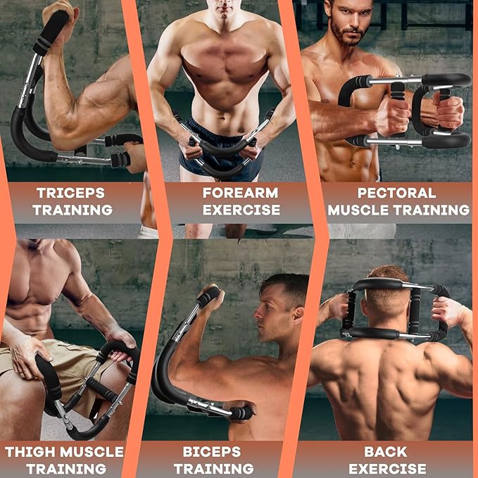 - 【Workout Equipment & Portable Exercise】The forearm strengthener as your personal workout trainer and helping you get a killer chest workout; Strength bar work multiple muscle groups with precision, including chest, arms, biceps, abs, shoulders and back, and thigh muscles. Simple for men and women to use, designed for smooth, uninterrupted movement, it offers a safe, reliable and effective workout for home strength training;