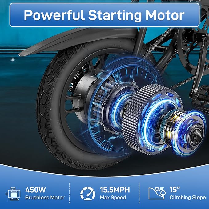 - 【Convenient Commuting】- Winado lightweight electric bike is equipped with a powerful 450W motor to enhance your riding experience, with a speed of up to 15.5MPH. This bicycle features a lightweight design with 14" tires to ensure flexibility in handling, making it perfect for your daily commuting, campus or park cycling, and other adventure activities.