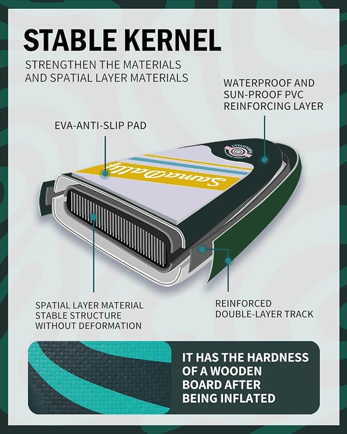 - Complete Accessories: SamaDally paddle board kit comes with everything you need, including basic accessories such as paddles, pumps, leash, repair kits and waterproof bags. You can travel quickly without having to make additional purchases, which not only increases the product value, but also improves convenience, allowing you to easily start your water trip.