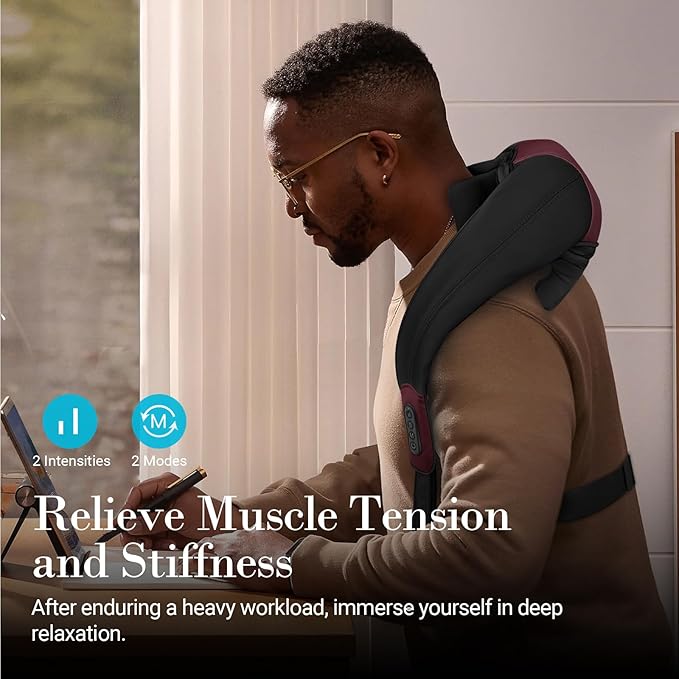 - 4D HAND-LIKE MASSAGE DESIGN:Upgrade your relaxation with our advanced neck and back massager. Featuring 4D kneading technology, it mimics deep human-like massages across a wider area from neck to shoulders. Engineered with 6 ergonomic nodes, it delivers powerful and continuous comfort to your neck and shoulders.