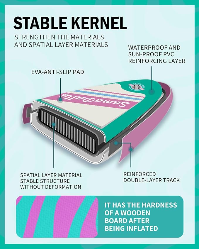 - Spacious & Enjoyable: SamaDally Candy Star series inflatable stand-up paddle boards are 1 to 2 inches wider than other similar products. 34in paddle surface is extremely spacious. Both beginners and paddleboards enthusiasts can find their own water - based fun on this SUP and enjoy a relaxing time.