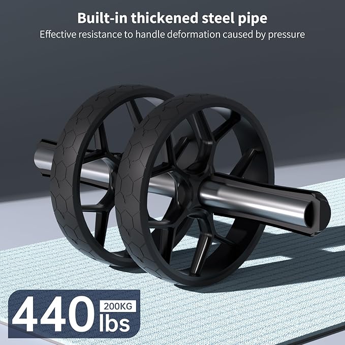 - 【Premium Durable Build & Comfort】 Our Ab wheel roller Constructed with a heavy-duty stainless steel shaft capable of supporting up to 440 lbs (200 kg). Features dual-sided EVA foam knee pads offering non-slip comfort and cushioning during kneeling exercises, protecting your joints.