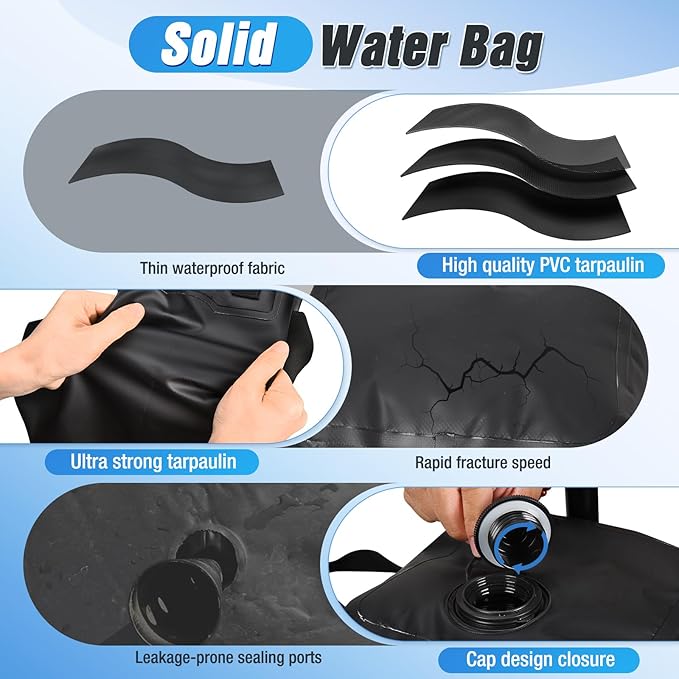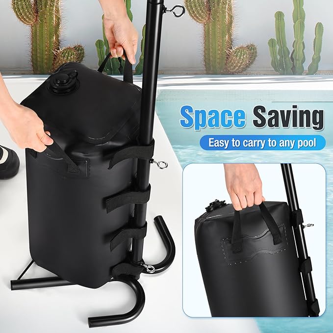 - 【Secure Setup with 2 Heavy-Duty 25L Water Bags 】The thickened, leak-proof water bags feature reinforced seams and a screw-top seal for easy filling and reuse. With quadruple Velcro straps, they attach firmly to the base, preventing slippage even during playing pool volleyball games. Just fill with water—no messy sand or drilling required!