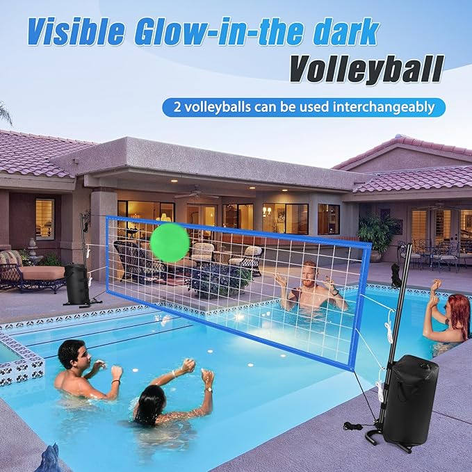 - 【Quick Assembly & Space-Saving Storage】Set up in minutes with our tool-free, snap-together poles and quick-lock pins for this cool pool stuff. Segmented design is more convenient to disassemble and install, and can also be simply stored away after use without taking up space.Better storage and preservation in order to prevent sun exposure. In addition, we provide 2 night-vision inflatable volleyballs with pumps for night enjoyment.