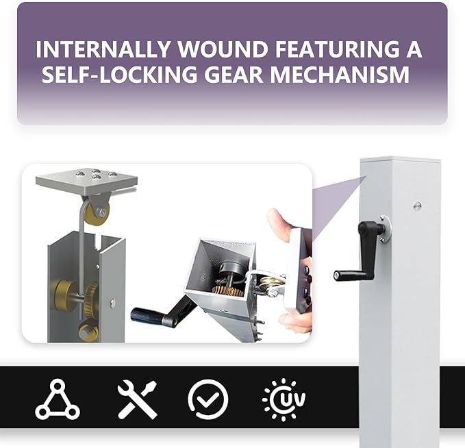 - 【Innovative Built-In Turbo Winder Mechanism】- Features our patented built-in turbo winder system design reduces operating force by 40%, allowing one-handed tension adjustments (unlike competitors' exposed winders) that allows quick and effortless net tension adjustments with smooth operation. The enclosed design completely blocks dust and rainwater.