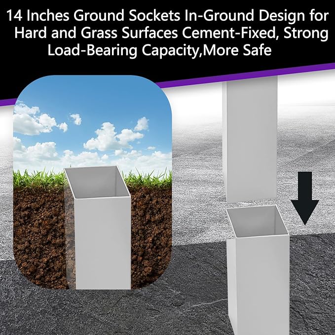 - 【Professional In-Ground Permanent Installation】- Designed for secure permanent in-ground installation with heavy-duty ground sockets included. The system works with both concrete foundations setups, providing tournament-level stability that temporary posts can't match. (Installation requires digging holes)