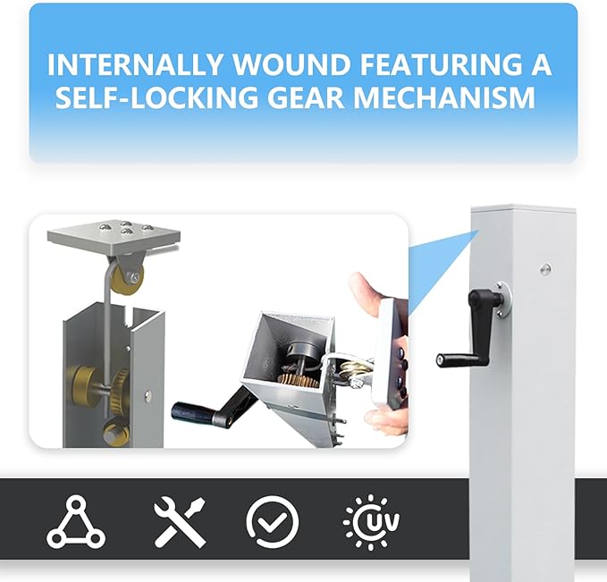 - 【Innovative Built-In Turbo Winder Mechanism】- Features our patented built-in turbo winder system design reduces operating force by 40%, allowing one-handed tension adjustments (unlike competitors' exposed winders) that allows quick and effortless net tension adjustments with smooth operation. The enclosed design completely blocks dust and rainwater.