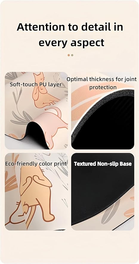 - 🐾 【Artistic Yoga Companion】Graceful hand-drawn kittens practicing Downward Dog & Tree Pose dance across a clean white mat, surrounded by blooming flowers – turns your yoga flow into a joyful storytelling session.