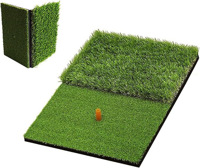 Aislor Golf 2-in-1 Double Grass Folding Strike Pad - Double Grass Pattern Design, Indoor and Outdoor Multi Functional Training Mat