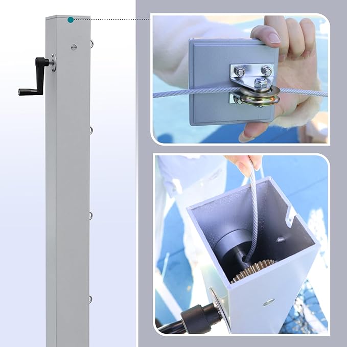 - EASY INSTALL AND EASY PLAY: The Reel and the handle have been pre-installed at our factory. All you need to do is install the sockets and the tennis net. The sockets will require professional concrete installation - concrete is not included.