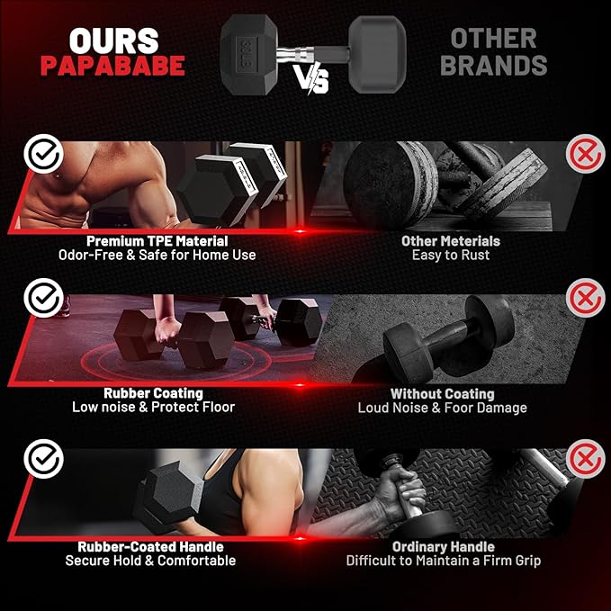 PAPABABE Hex Dumbbell Set 45-550 lb, Rubber Encased Home Gym Dumbbells, Weights Dumbbells for Women & Men, Hand Weight for Strength Training