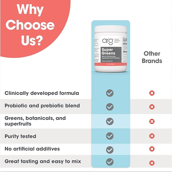 Allergy Research Group Super Greens - Superfood Green Powder with Spirulina, Chlorellla and Oat Grass, Clinically-Studied Probiotic Support for Women and Men - 8.45 oz (240 g)