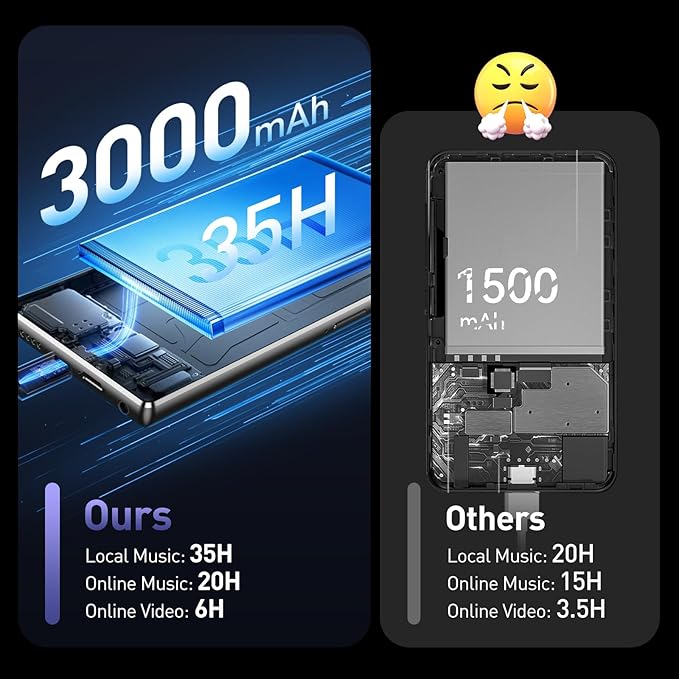 - 3000mAh That Lasts All Day - Enjoy your music the way artists intended with Hi-Fi audio quality that supports lossless formats. The long-lasting 3000mAh battery provides up to 24 hours of continuous playback, so your music stays with you from morning commute to bedtime.