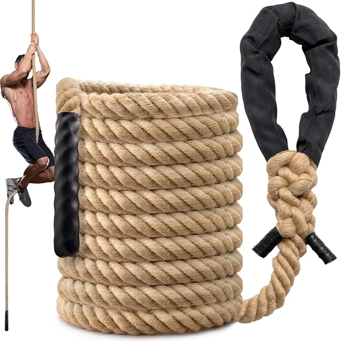 • Enhanced Tensile Strength: Handwoven from premium heavy duty jute with tight twists, this 1.5-inch thick rope offers superior stronger tensile strength and abrasion resistance, tested at 16,000N to support an enhanced up to 600 lbs - outperforming standard when properly installed, ensuring durability and safety for intense workouts with multiple lengths to adjust exercise intensity, serving as an ideal gift for professional and amateur sports lovers of ages