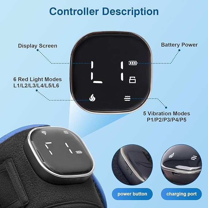 - Integrated Heat & Vibration Modes:Combine 6 red light intensity levels and 5 vibration modes for a balanced light, heat, and vibration therapy. This dynamic treatment helps ease stiffness and promote comfort without overstating effectiveness.