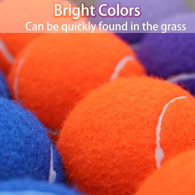 - 【Value Package】You will get 40 pcs tennis ball and comes with a reusable mesh bag.Easy transport and storage.10 different prevalent colours for your choice ,make your pet enjoying catching and running.