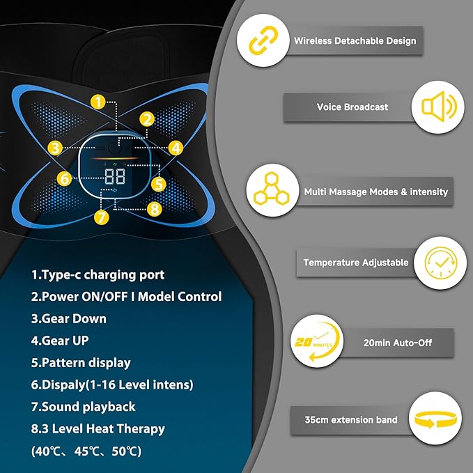- Smooth & Tighten Your Stomach: This Stomach fat loss massage belt target stubborn cellulite and effectively reduce stretch marks.The massage stimulation function It enhances collagen production, and improves skin elasticity, leaving you with firmer and smoother skin, it seamlessly integrates into your slim waist and wellness routine.