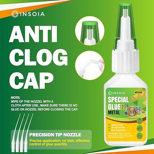 - ?ޝ?�Precision Application?‘INSOIA Metal Repair Glue is equipped with a precision-tip applicator and anti-clogging cap to ensure smooth and mess-free use. The narrow nozzle lets you apply glue precisely to fine seams, corners, and tight areas?”ideal for delicate repairs on jewelry, electronics, and model parts. The glue stays fresh in the bottle for long-term use with no waste.