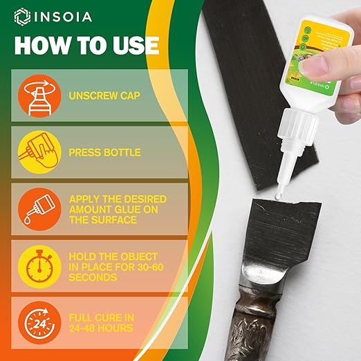 - ?› ️【Multipurpose Strong Glue for Metal?‘This heavy-duty metal glue works great not only on stainless steel and aluminum but also bonds securely with plastic, wood, rubber, ceramics, and leather. Whether you?™re tackling automotive fixes, household repairs, or creative DIY projects, INSOIA glue delivers powerful results for both smooth and rough surfaces, including vertical applications.
