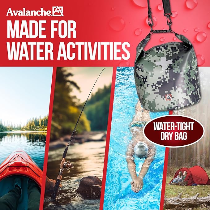 - Compact First Aid Kit: Avalanche waterproof first aid kit includes 103 pieces of essential first aid supplies for emergency needs. Packed in a secure dry bag to protect your medical supplies from water damage