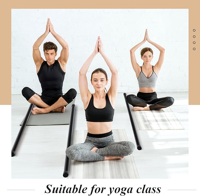 - Optimal Size: the black yoga stick has a length about 57 inches/ 145 cm and a diameter about 1 inches/ 2.5 cm; The size is able to cater to a broad spectrum of body types and height ranges, making it accessible for the masses; The protective cases on the two sides are nonslip, ensuring you a safe experience