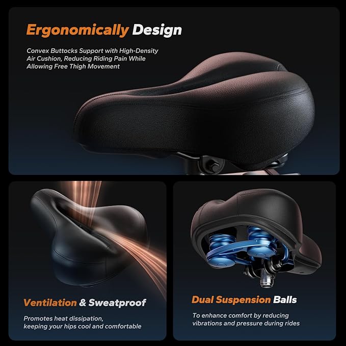 - USER-FRIENDLY BIKE: This workout indoor bike with high density foam and dual spring suspension design helps alleviate discomfort during your ride. The aluminum alloy pedal provides better flexibility, slip resistance, and safety. Additionally, the handlebars feature advanced ergonomic designs for a more comfortable grip, allowing you to focus on your workout without distractions