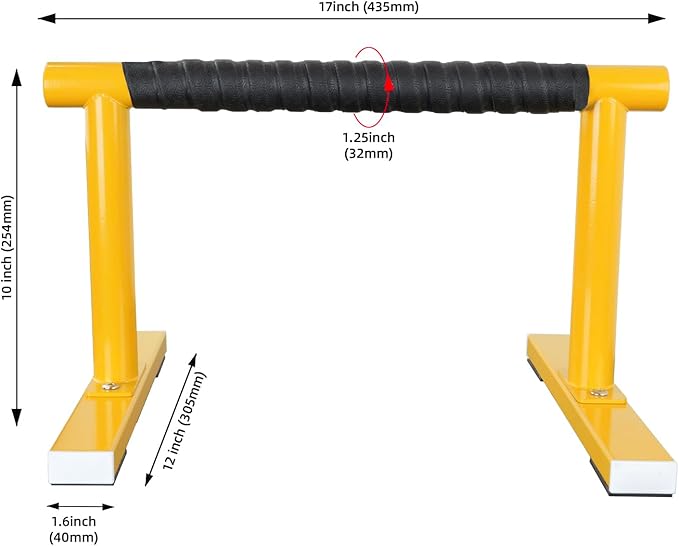 - Solid Construction, Sturdy and Durable : Include 1 pair yellow push up stands, support with thick gauges heavy duty steel pipe, all parts firm and strong connected, these parallettes bars maximum weight capacity 500lbs, very sturdy and durable.