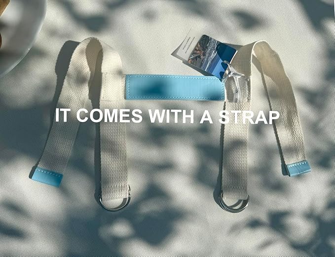 - Includes: 1 white canvas mat, faux leather handle, and webbing strap