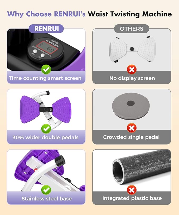 - 【Professional Full-Body Core Trainer】RENRUI targets waist slimming and ab tightening, effectively working out your waist, abdomen, butt, and back. One machine replaces, many making it perfect for all fitness levels from beginners to pros. Enhance your upper-body sculpting by using it with resistance bands!